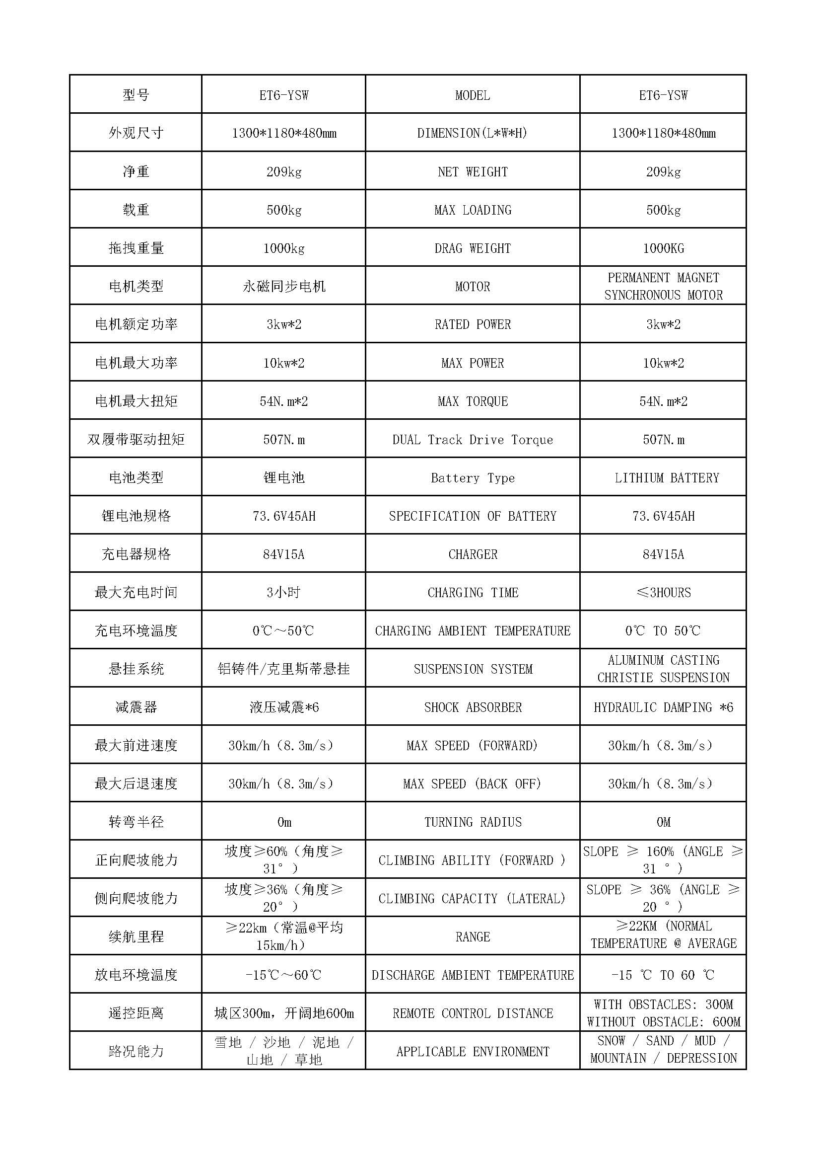 Powered by dual high-quality 3kw motors and equipped with large tracks, this vehicle is perfect for transportation in all terrain.